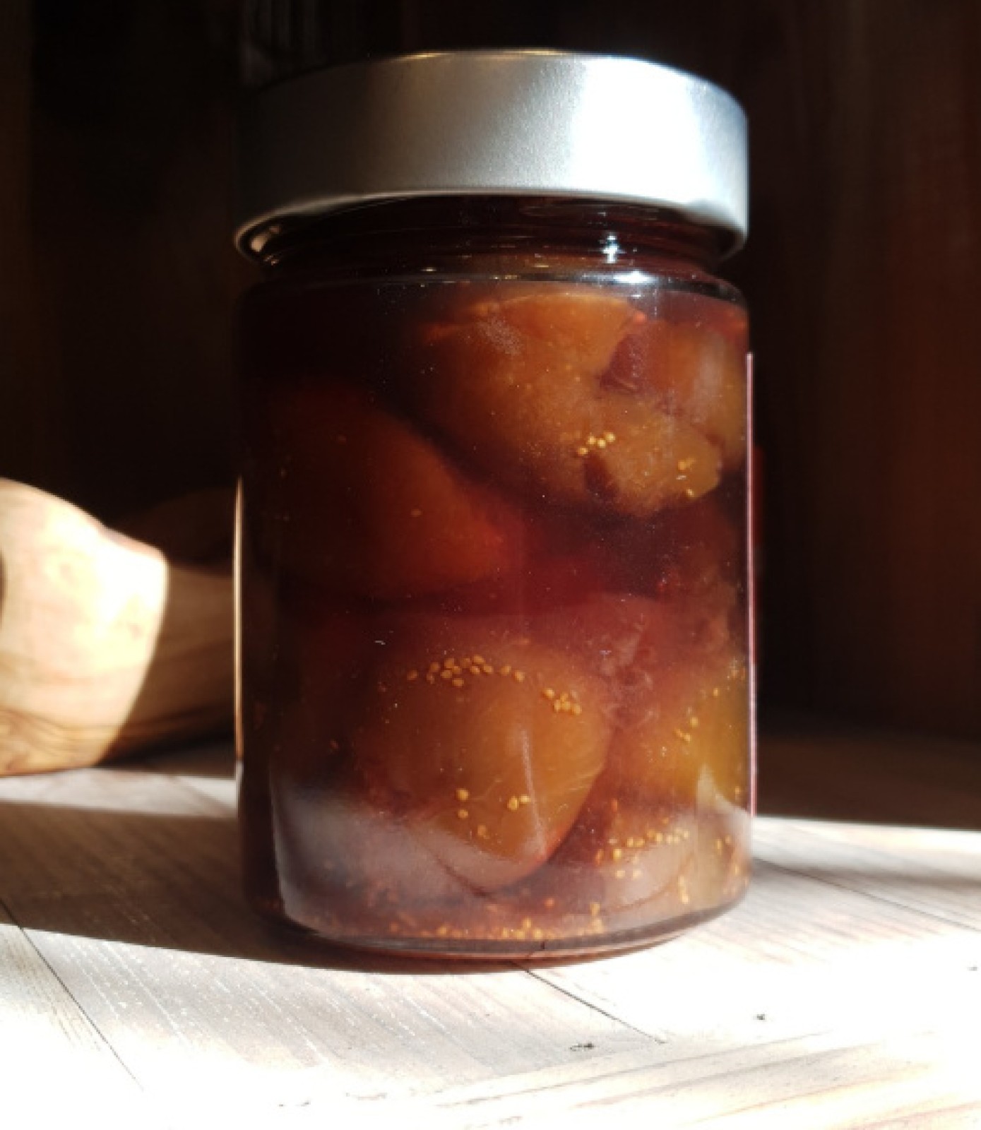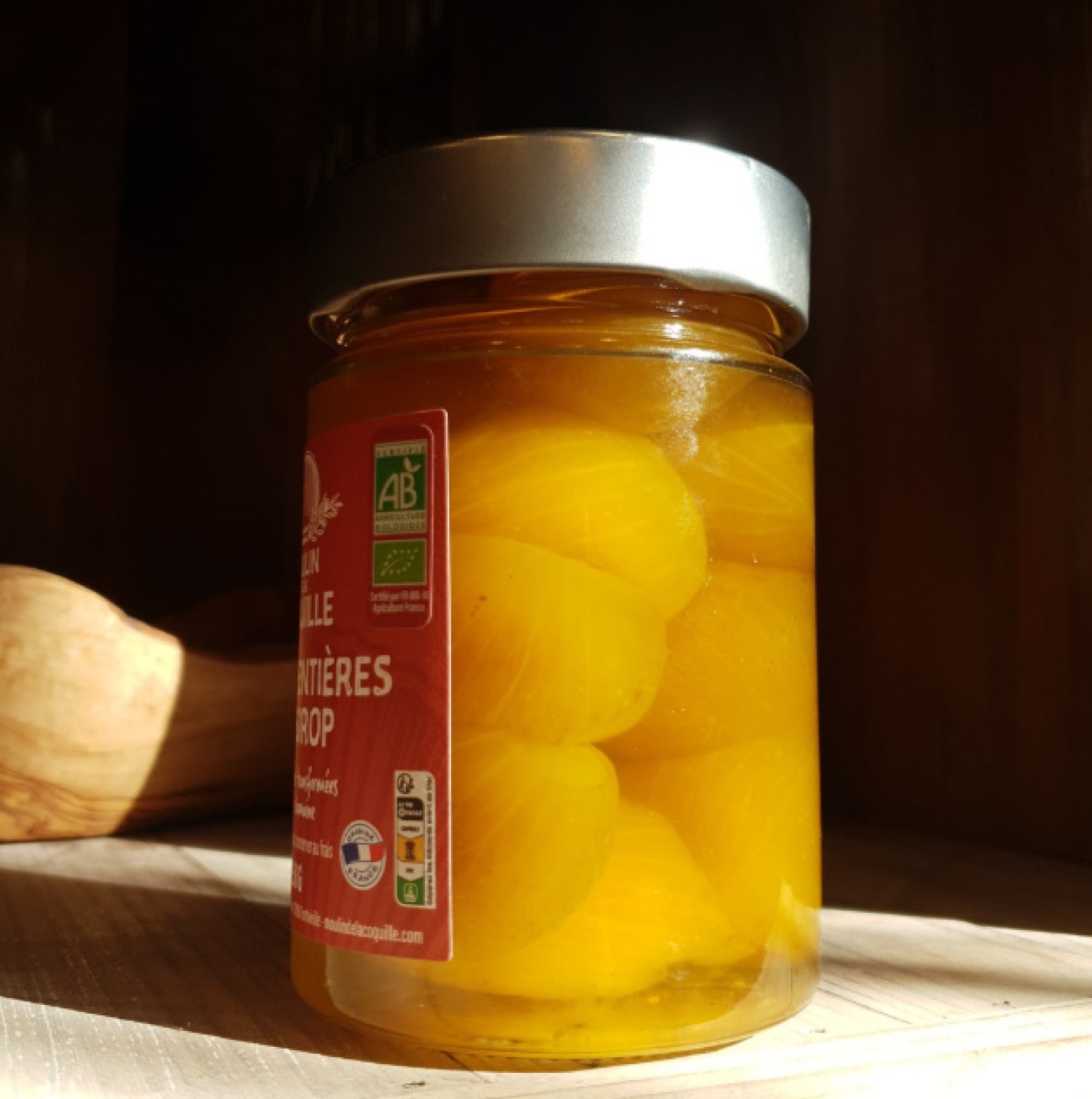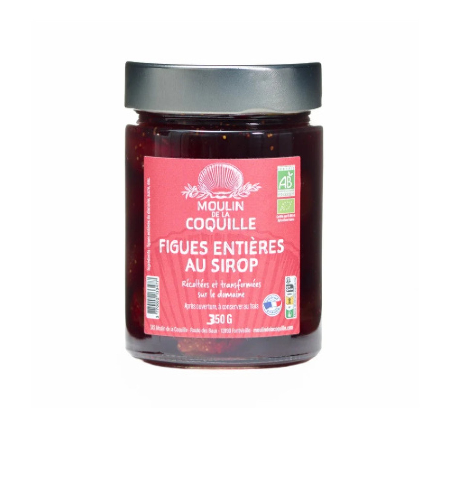 Les figues entières au sirop du Moulin sont l’un de ces produits simples et précieux qui racontent le domaine mieux que n’importe quel discours. Elles sont biologiques, cultivées et récoltées à la main sur place, puis préparées dans un sirop léger composé uniquement d’eau et de sucre. Rien d’ajouté, rien de transformé : juste la figue dans sa vérité la plus pure.
